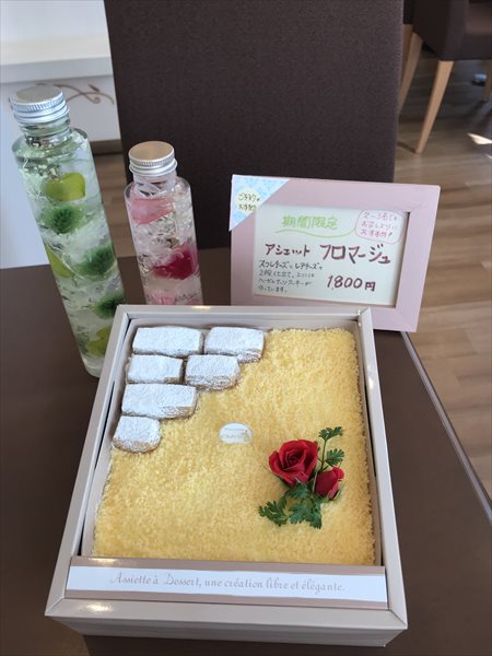 スフレチーズとレアチーズが二層仕立てのケーキの上には