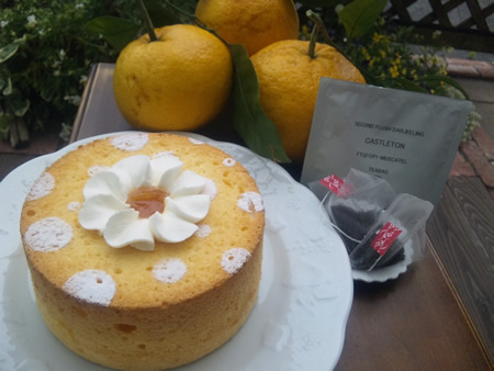 甘夏ピール入りの爽やかなシフォンの中心は軽いフロマージュブランクリームと手作りジャム。